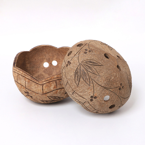 Cesta colgante de cáscara de coco, juego de cuencos de coco, maceta de flor